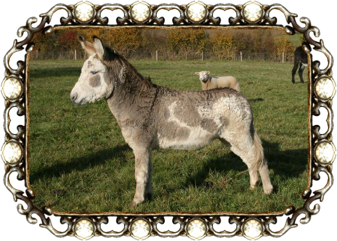 Igor est un âne male dont la couleur de robe est blanche, grise, et sable. Un “Âne Pie”. Il a aussi la célèbre « croix Saint André ».