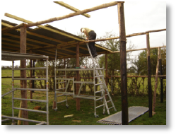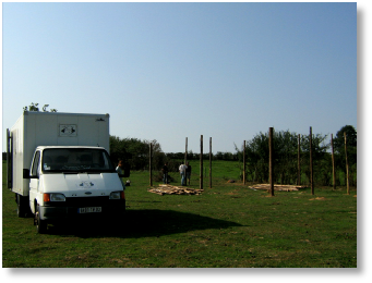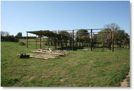 C’est pour ca que a travaillé dur depuis la fin de l’été, pour construire un grand abri dans le plus grand des prés. Pendant les « heures perdues », a construit une écurie d’environ 15 x 10 mètres. J’ai surtout été aidé les jeudis par Henri Maas, le seul et unique bénévole de Aide Aux Anes. Il y a aussi Inge Wiersema et Evertjan Janssen, qui ont sponsorisé une grande partie de l’abri, et chez qui nous avons eu le droit d’aller chercher les bois qui ont servi aux fondations, qui venaient nous aider