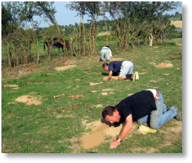 Les trous faits manuellement dans le sol sec…