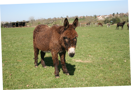 A son arrivée dans un des prés d’ Aide Aux Anes, Hector n’a pas compris ce qui lui arrivait, quand il a vu s’approcher de lui 40 anes qui venaient lui dire bonjour.